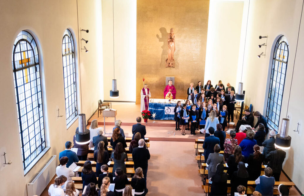 Den Auftakt bildete ein stimmungsvoller Festgottesdienst in der klaren und lichten Architektur der schuleigenen Kapelle, zelebriert von Nikolaus Krasa, Delegat der Erzdiözese Wien, der unter anderem auch eine kleine Lehrstunde Hebräisch einschob. Konzelebrant war Thomas Wisotzki, er ist der Schule als Schulseelsorger der beiden Sacré-Coeur-Schulen am benachbarten Standort Rennweg eng verbunden. Musikalisch schwungvoll begleitet wurde die Messe vom Schulchor, bestehend aus engagierten Schüler:innen und Pädagog:innen, sowie von einem Instrumentalensemble der Lehrerschaft.